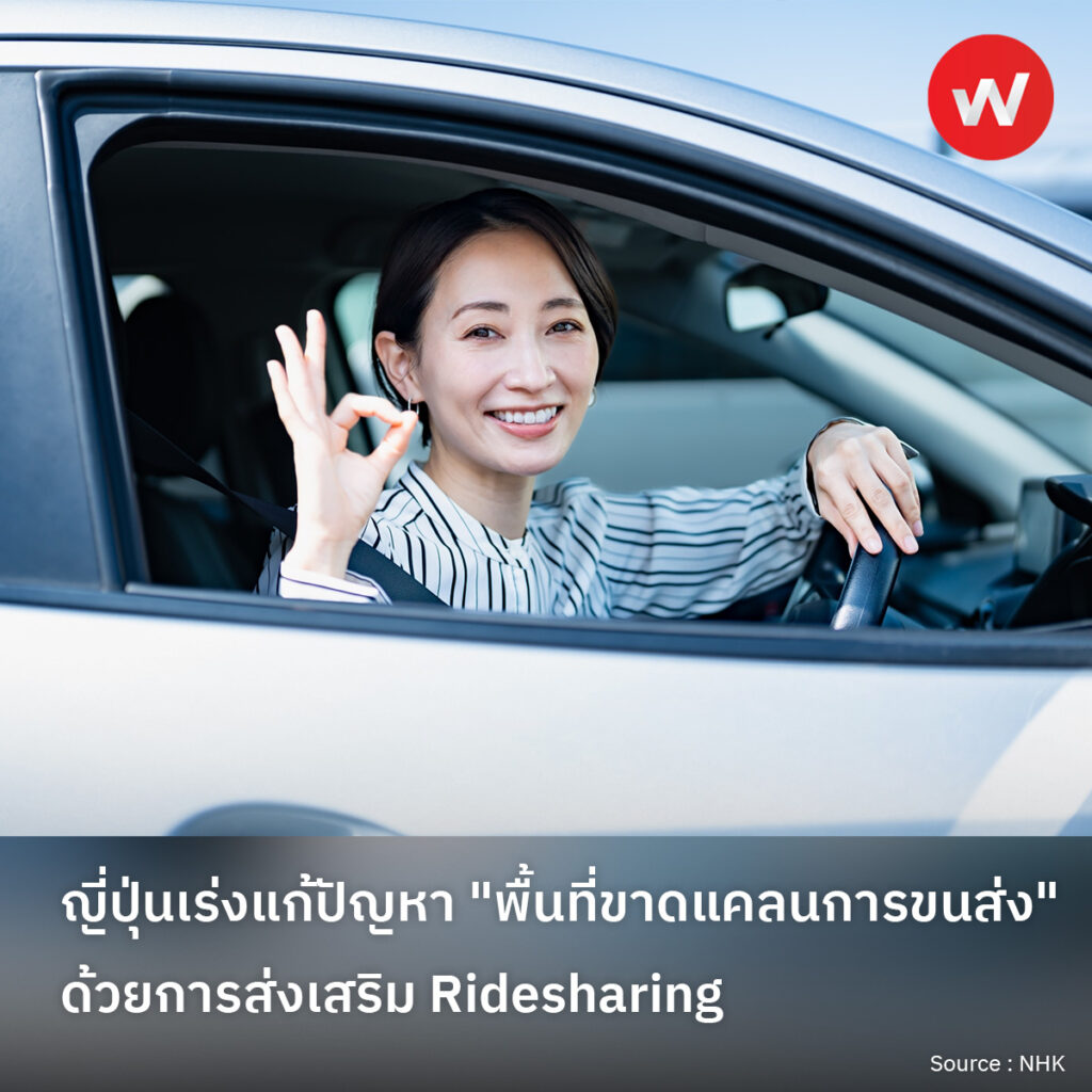 กระทรวงที่ดิน โครงสร้างพื้นฐาน การขนส่ง และการท่องเที่ยวของญี่ปุ่น (MLIT) กำลังผลักดันมาตรการแก้ไขปัญหา “พื้นที่ขาดแคลนการขนส่ง” โดยมุ่งเน้นการส่งเสริมบริการ Ridesharing ตั้งเป้าวางแนวทางแก้ไขปัญหาให้กับทุกท้องถิ่นที่ประสบปัญหานี้ภายในสิ้นปี ค.ศ. 2024