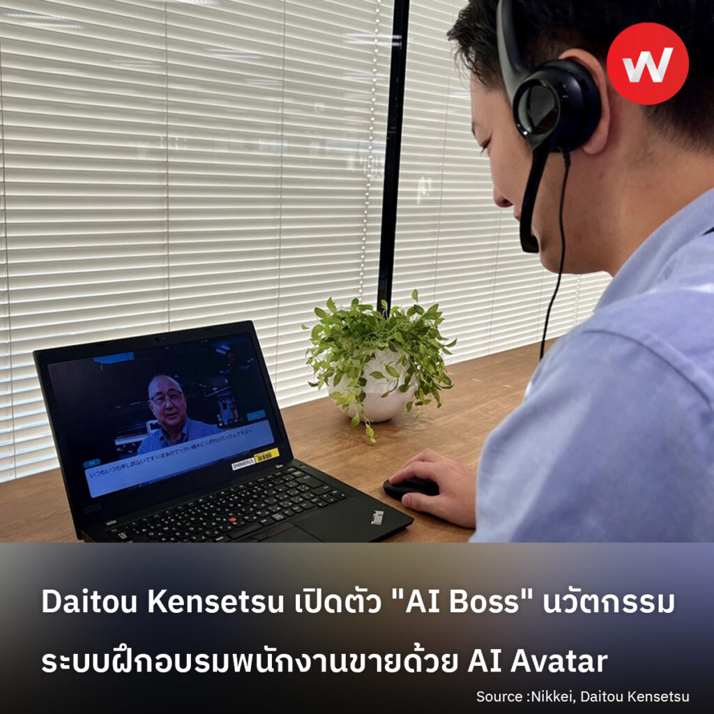 บริษัท Daitou Kensetsu บริษัทอสังหาริมทรัพย์ชั้นนำของญี่ปุ่น ประกาศความสำเร็จในการพัฒนาระบบ “AI Boss” เทคโนโลยีการฝึกอบรมพนักงานขายรูปแบบใหม่ เมื่อวันที่ 10 ตุลาคม 2024 โดยใช้ AI Avatar จำลองสถานการณ์การขายเพื่อพัฒนาทักษะของพนักงาน