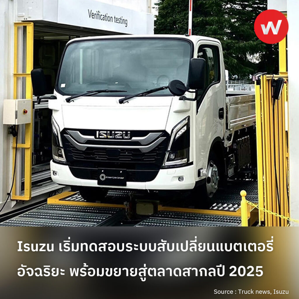 Isuzu Motors เริ่มทดสอบระบบ “EVision Cycle Concept” นวัตกรรมสับเปลี่ยนแบตเตอรี่สำหรับรถยนต์ไฟฟ้าที่โรงงานฟุจิซาวะ จังหวัดคานากาวะ ตั้งแต่เดือนตุลาคม 2024 หลังจากเปิดตัวครั้งแรกของโลกในงาน Japan Mobility Show 2023