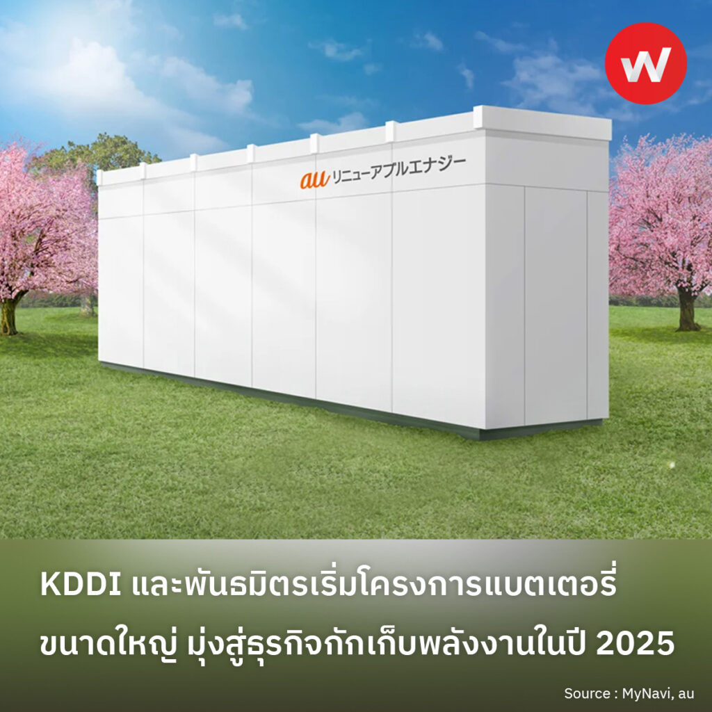 บริษัท au Renewable Energy, KDDI, Tokyo Electric Power Holdings (TEPCO) และ ENERES ประกาศแผนการเริ่มธุรกิจกักเก็บพลังงานในครึ่งหลังของปี 2025 โดยมี au Renewable Energy เป็นผู้ดำเนินการหลัก กลุ่มบริษัทจะติดตั้งระบบแบตเตอรี่ขนาดใหญ่ (กำลังการผลิต 1,999 กิโลวัตต์ ความจุ 5,608 กิโลวัตต์-ชั่วโมง) ที่ศูนย์เครือข่าย KDDI Oyama ในจังหวัดโทชิกิ โดยจะเริ่มก่อสร้างในเดือนธันวาคม 2024