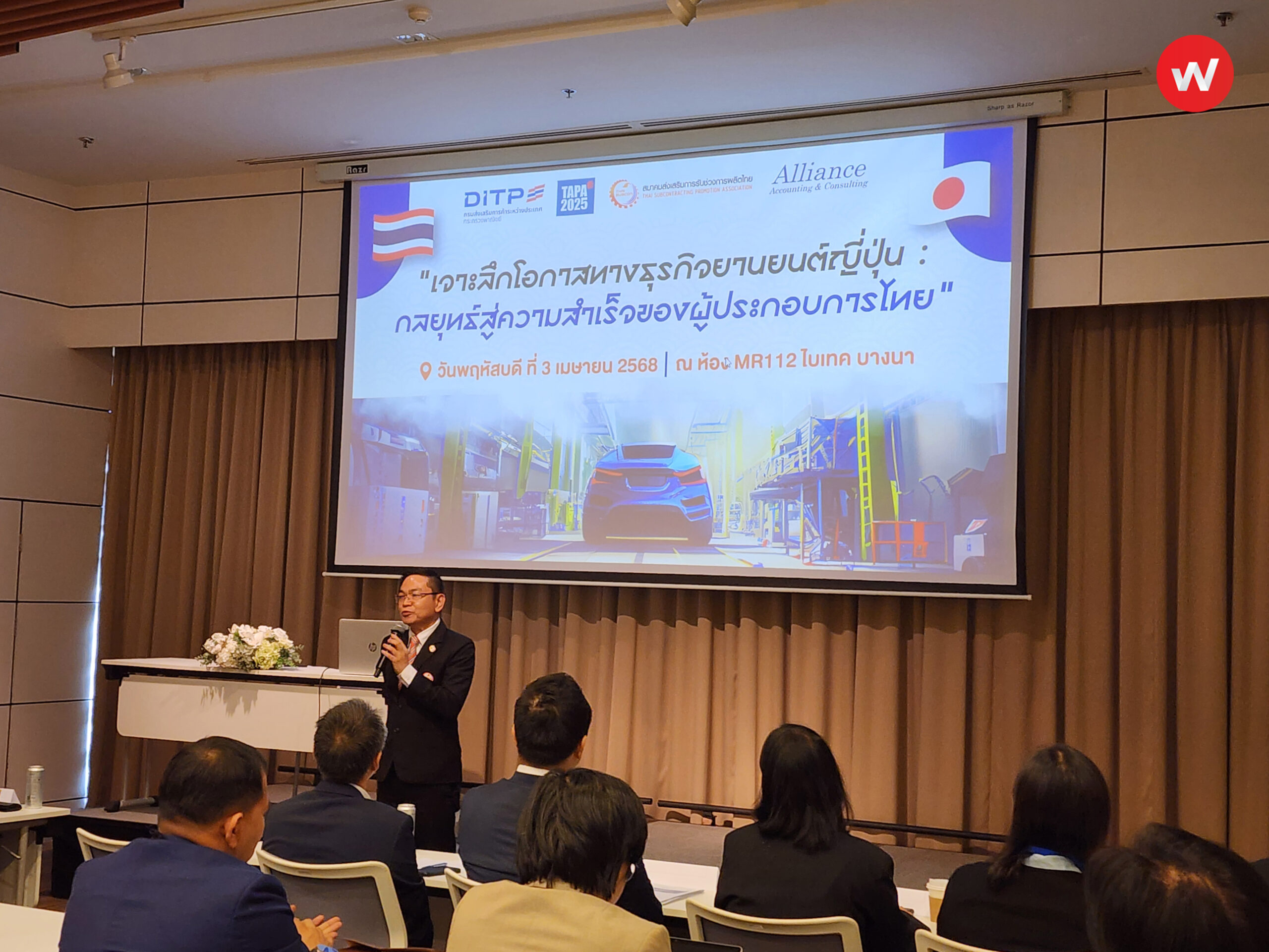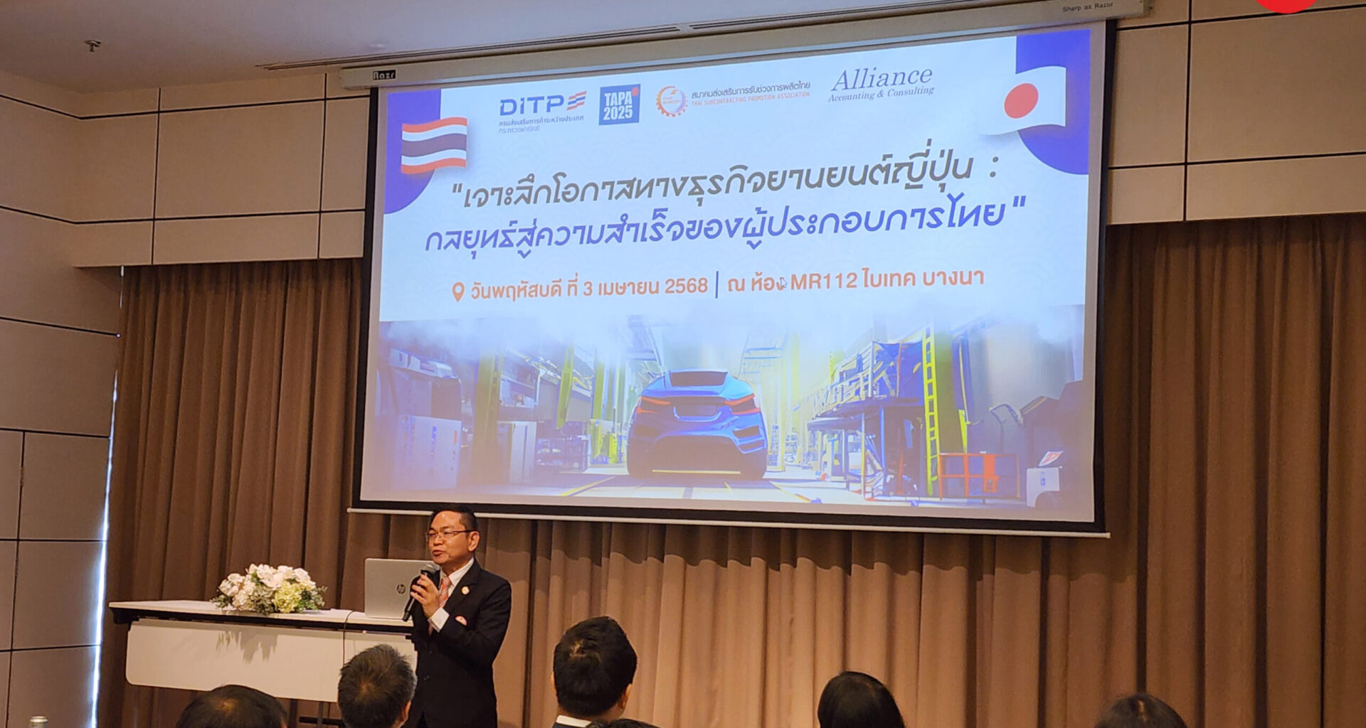 เมื่อวันที่ 3 เมษายน 2568 ที่ผ่านมา งานสัมมนา “เจาะลึกโอกาสทางธุรกิจยานยนต์ญี่ปุ่น กลยุทธ์สู่ความสำเร็จของผู้ประกอบการไทย” ได้จัดขึ้นเป็นส่วนหนึ่งของงาน TAPA 2025 – Thailand International Auto Parts & Accessories Show โดยได้รับความสนใจจากผู้ประกอบการในอุตสาหกรรมยานยนต์เป็นอย่างมาก