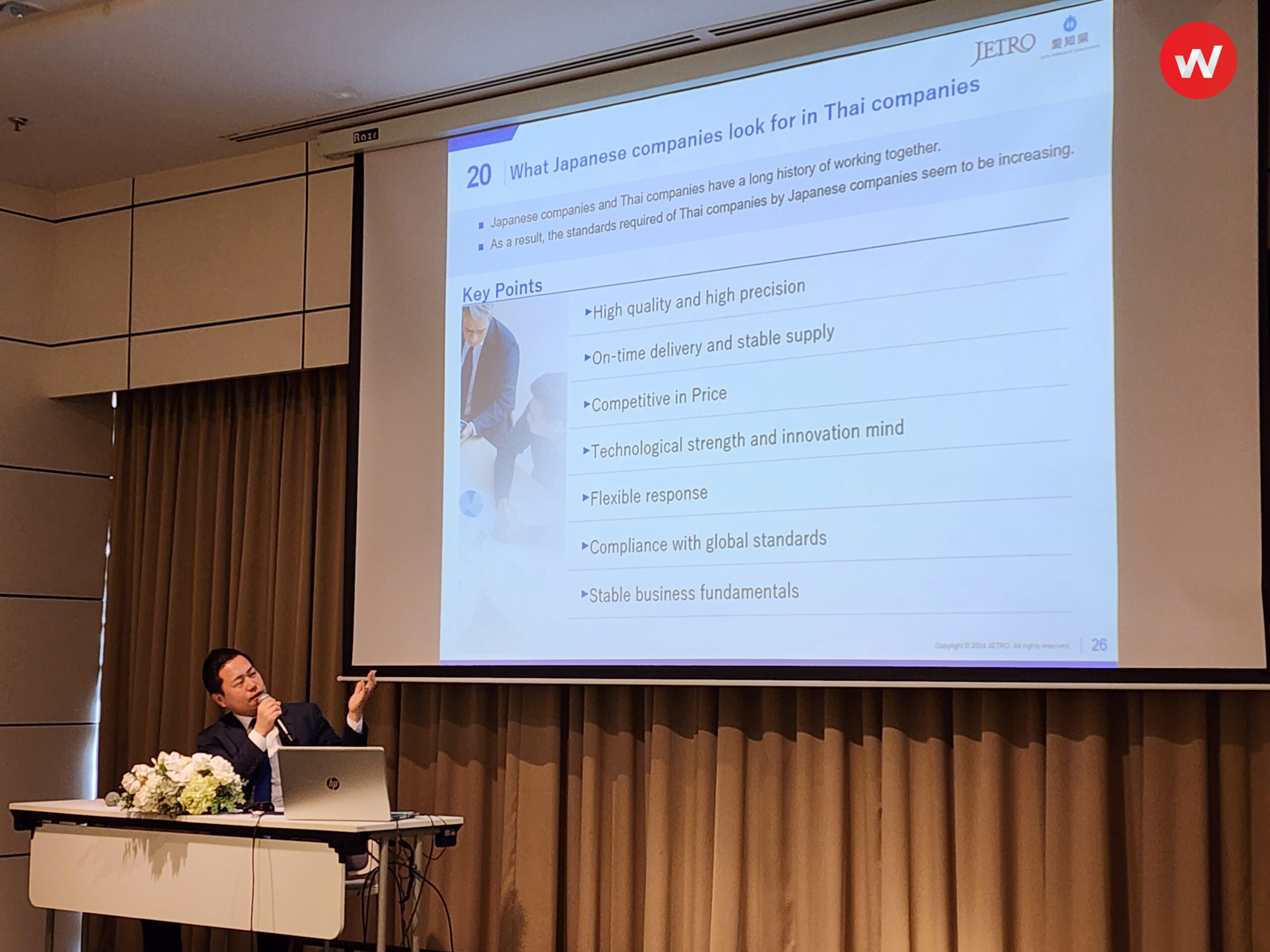 ภายในงาน ดร.จักรกฤษณ์ พุ่มไพศาลชัย ผู้จัดการทั่วไป บริษัท เอเซีย อัลลิแอนซ์ พาร์ทเนอร์ จำกัด ผู้เชี่ยวชาญด้านการให้บริการบัญชีและธุรกิจระหว่างญี่ปุ่น-ไทย และประเทศในกลุ่มอาเซียน ได้เน้นย้ำถึงความสำคัญของแนวคิดการทำธุรกิจในระดับภูมิภาค (Regionalization) เนื่องจากคู่ค้าสำคัญของทั้งญี่ปุ่นและไทยส่วนใหญ่อยู่ในเอเชีย การเปลี่ยนแปลงของภูมิรัฐศาสตร์และสงครามการค้าระหว่างประเทศ เช่น จากฝั่งสหรัฐอเมริกา ทำให้รูปแบบธุรกิจที่มุ่งเน้นในระดับภูมิภาคอาจมีความมั่นคงและยืดหยุ่นต่อความเสี่ยงมากกว่าในระยะยาว