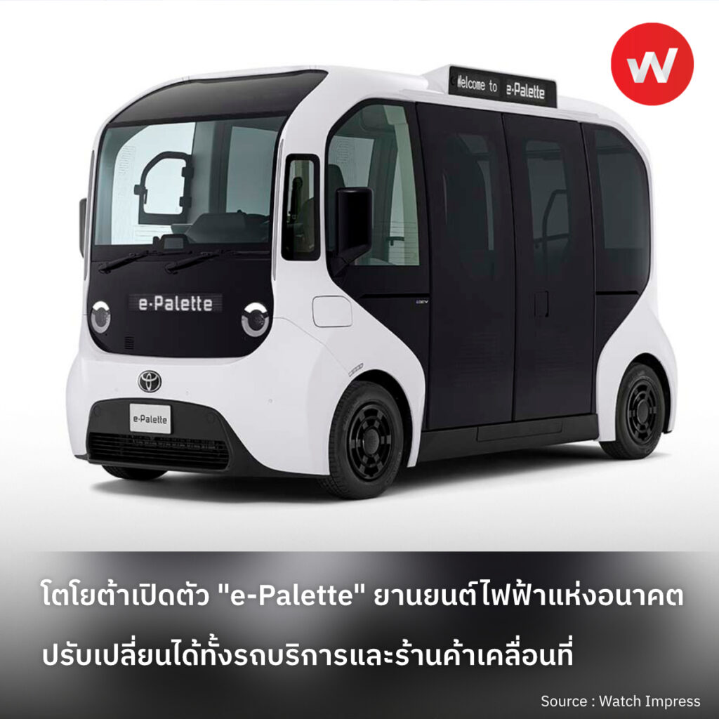 บริษัท โตโยต้า มอเตอร์ คอร์ปอเรชั่น เปิดตัว “e-Palette” ยานยนต์ไฟฟ้าแบตเตอรี่ (BEV) อเนกประสงค์ ที่สามารถปรับเปลี่ยนรูปแบบการใช้งานได้อย่างยืดหยุ่น เพื่อตอบโจทย์ธุรกิจและบริการในอนาคต ราคาเริ่มต้นที่ 29 ล้านเยน