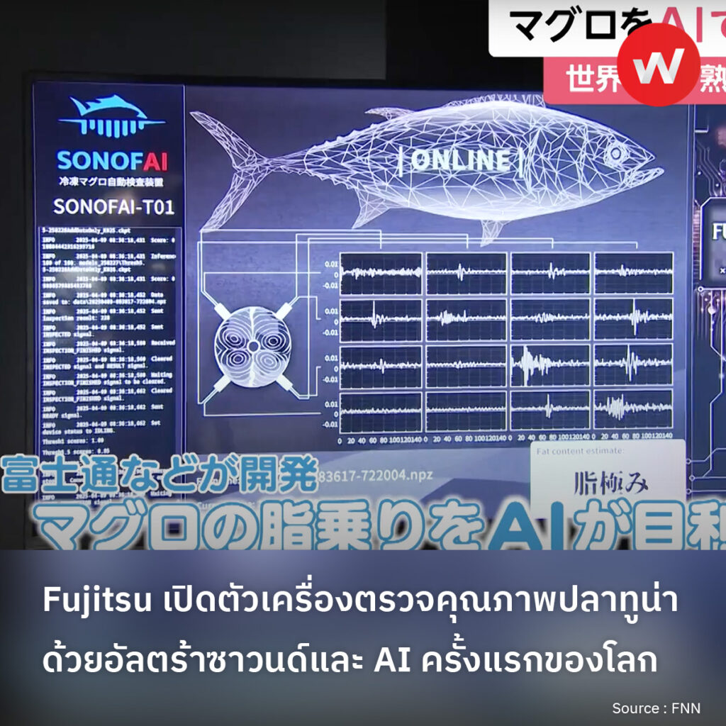 บริษัท Fujitsu และพันธมิตรได้พัฒนาเครื่องตรวจสอบคุณภาพปลาทูน่าแช่แข็งด้วยเทคโนโลยีอัลตร้าซาวนด์และปัญญาประดิษฐ์ (AI) ซึ่งเป็นนวัตกรรมแรกของโลกที่สามารถประเมินความอร่อยของปลาทูน่าได้อย่างรวดเร็วและแม่นยำ