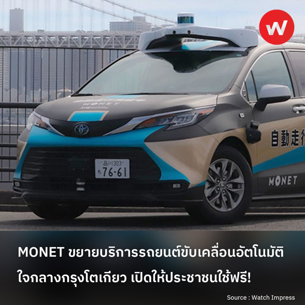 MONET Technologies ประกาศเริ่มให้บริการขนส่งด้วยรถยนต์ขับเคลื่อนอัตโนมัติแก่บุคคลทั่วไปอย่างเป็นทางการ ตั้งแต่วันที่ 4 สิงหาคมนี้เป็นต้นไป ในย่านอ่าวโตเกียว (ไดบะ, อาโอมิ, อาริอาเกะ) และขยายสู่พื้นที่ใกล้เคียงอย่างโทโยสุ โดยไม่คิดค่าบริการ