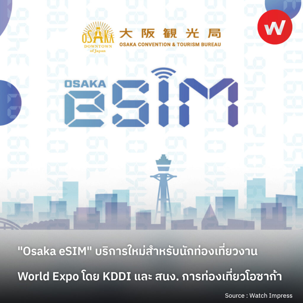 สำนักงานการท่องเที่ยวโอซาก้าและบริษัท KDDI ได้ประกาศเปิดตัวบริการการสื่อสารมือถือใหม่ “Osaka eSIM” ซึ่งจะเริ่มให้บริการตั้งแต่วันที่ 13 เมษายน 2024 เป็นต้นไป