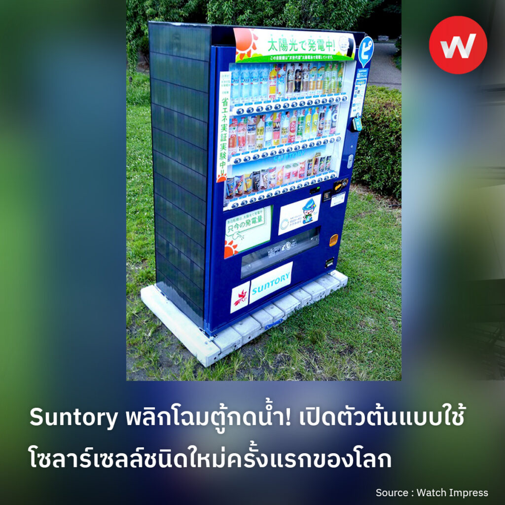 Suntory และ PXP ได้เริ่มการทดลองภาคสนามกับตู้จำหน่ายสินค้าอัตโนมัติที่ใช้พลังงานจาก “เซลล์แสงอาทิตย์แคลโคไพไรต์ (Chalcopyrite)” เป็นครั้งแรกของโลก โดยจะติดตั้งที่สวนสาธารณะในเมืองซากามิฮาระ จังหวัดคานางาวะ เป็นเวลา 1 ปี เพื่อทดสอบประสิทธิภาพการใช้งานจริง